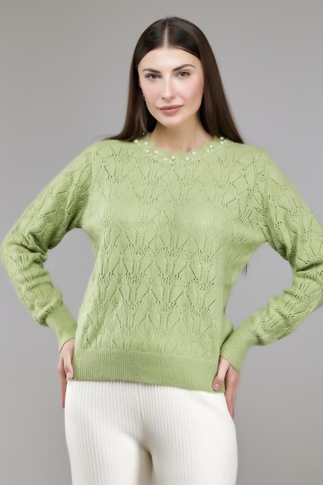 البلوزة الشتوية هذه تمتاز بنعومة قماشها وأناقة تصميمها، فهي مصنوعة من مواد ناعمة توفر الدفء في فصل الشتاء. يتميز التصميم هذا بياقة مزينة بالولو، مما يُضيف لها لمسة جمالية وأنيقة. إنها قطعة مثالية تجمع بين الراحة والأناقة في مظهر واحد.