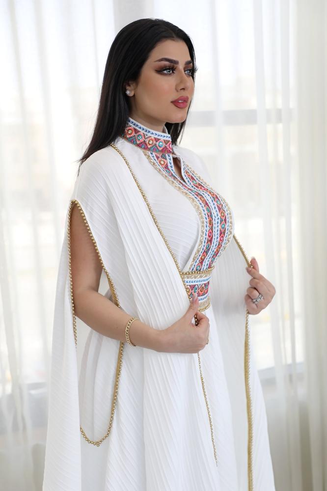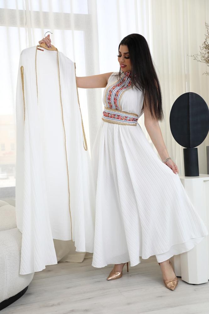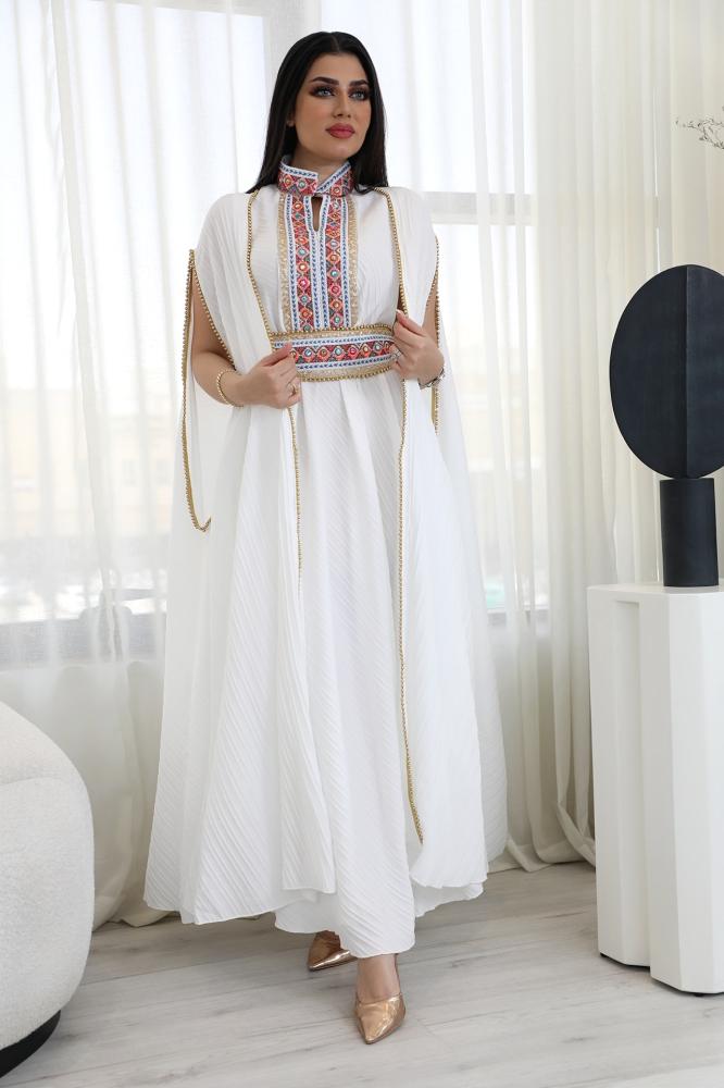 جلابية من قطعتين بكسرات قُطرية وتطريز انيق يتناسب مع المناسبات المميزة و حزام خارجي مطرز