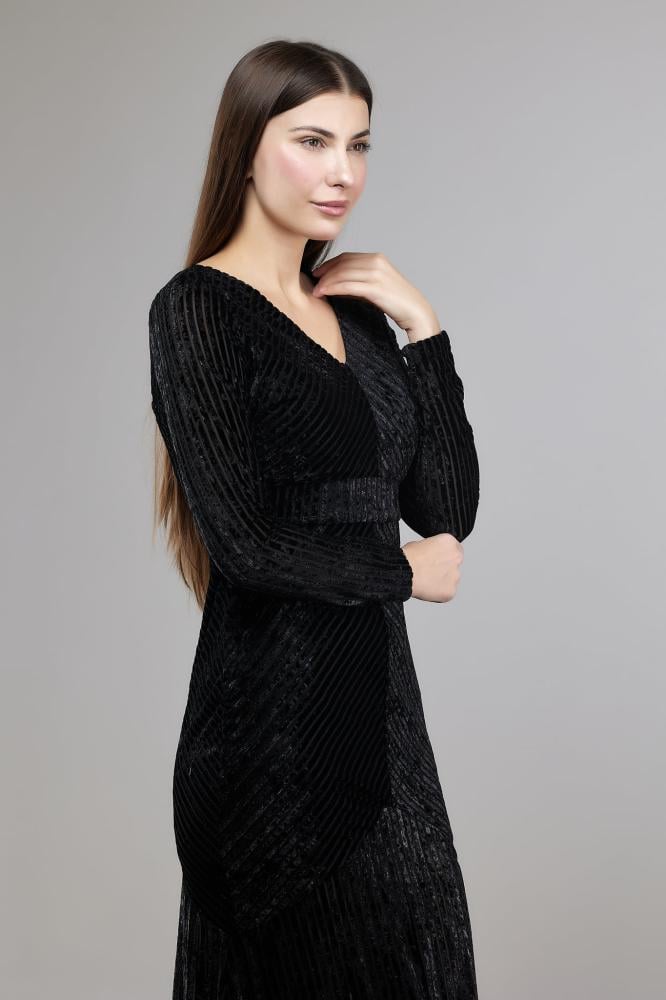 فستان شتوي طويل بتصميم أنيق ومصنوع من قماش المخمل، يوفر دفئًا وأناقة في فصل الشتاء. القماش المخملي يضفي لمعانًا فاخرًا، في حين يوفر الطول الزائد حماية إضافية من البرودة. تفاصيل التصميم تبرز أنوثتك، مما يجعله خيارًا رائعًا للمناسبات الشتوية والفعاليات الرسمية.