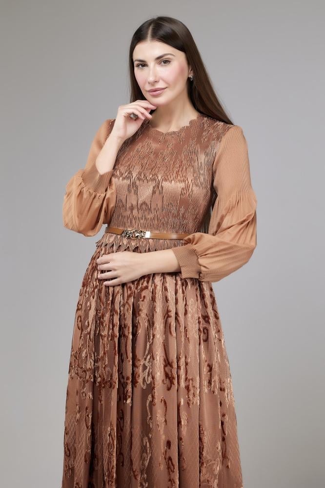 فستان طويل أنيق بأكمام كسرات، مصنوع من قماش عالي الجودة يوفر لمسة ناعمة ومريحة. تصميمه يتميز بقصة فاخرة تبرز جمال القوام، مع تفاصيل كسرات تضيف لمسة أنثوية راقية. الفستان مناسب للمناسبات الرسمية والحفلات، يجمع بين الأناقة والراحة لتكوني محط الأنظار.