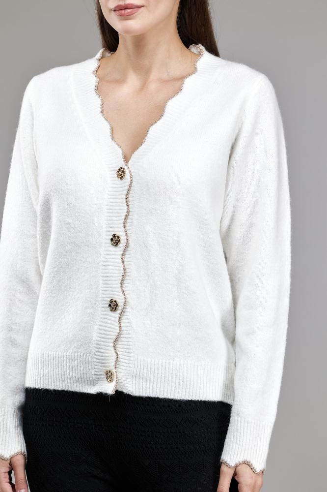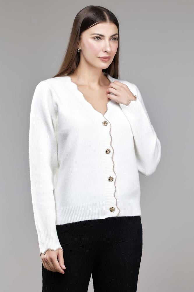 معطف شتوي بأزرار مصنوع من صوف ناعم، مزين بخيوط ذهبية وأزرار تضيف لمسة أنيقة ومميزة.
